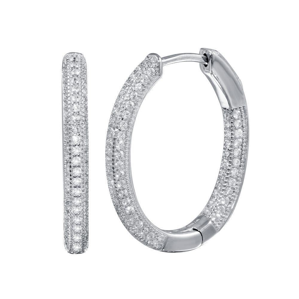 925 Rhodium Plated Inside Out CZ Oval Hoop Vault Lock Earrings
