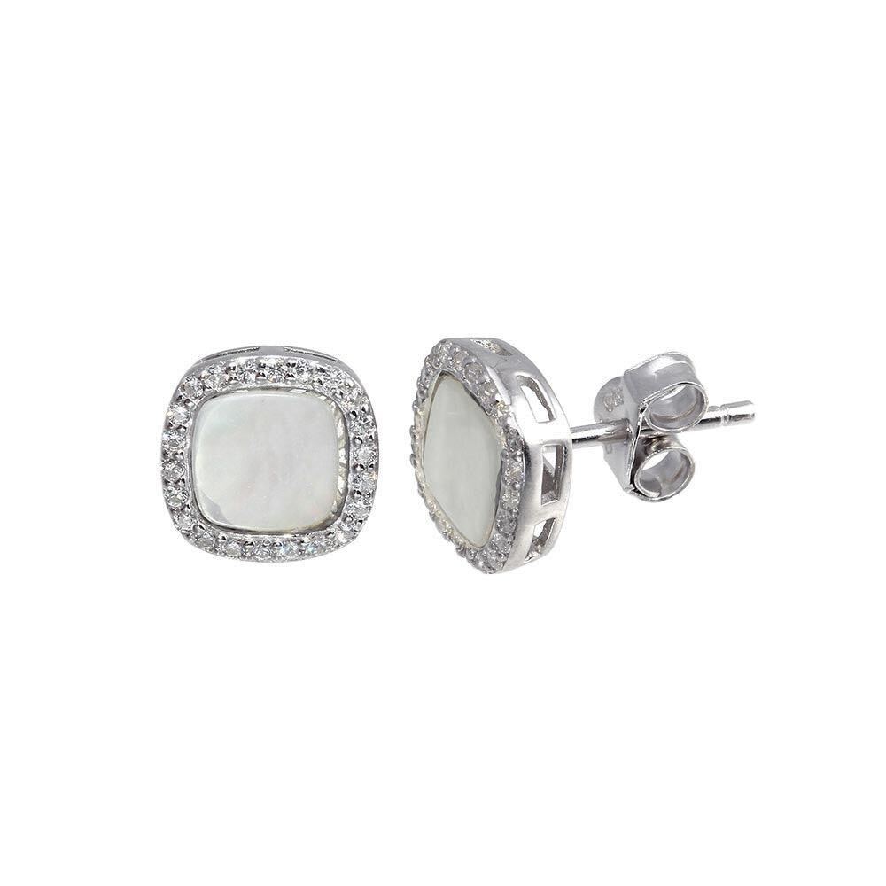925 Rhodium Plated Square Opal Stud Earrings with CZ